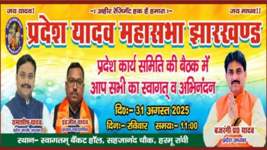 - प्रदेश यादव महासभा की बैठक आज रांची में कई मुद्दों पर होगी चर्चा
